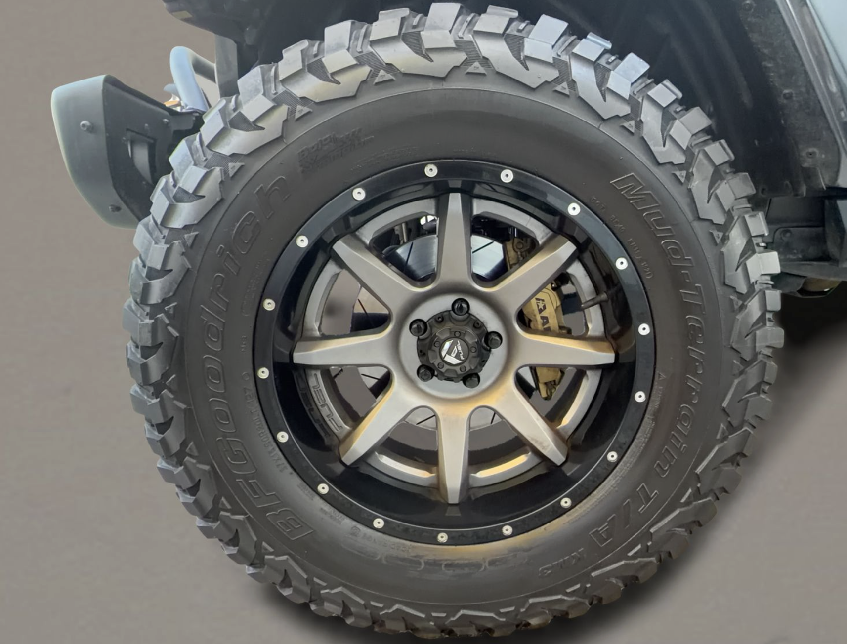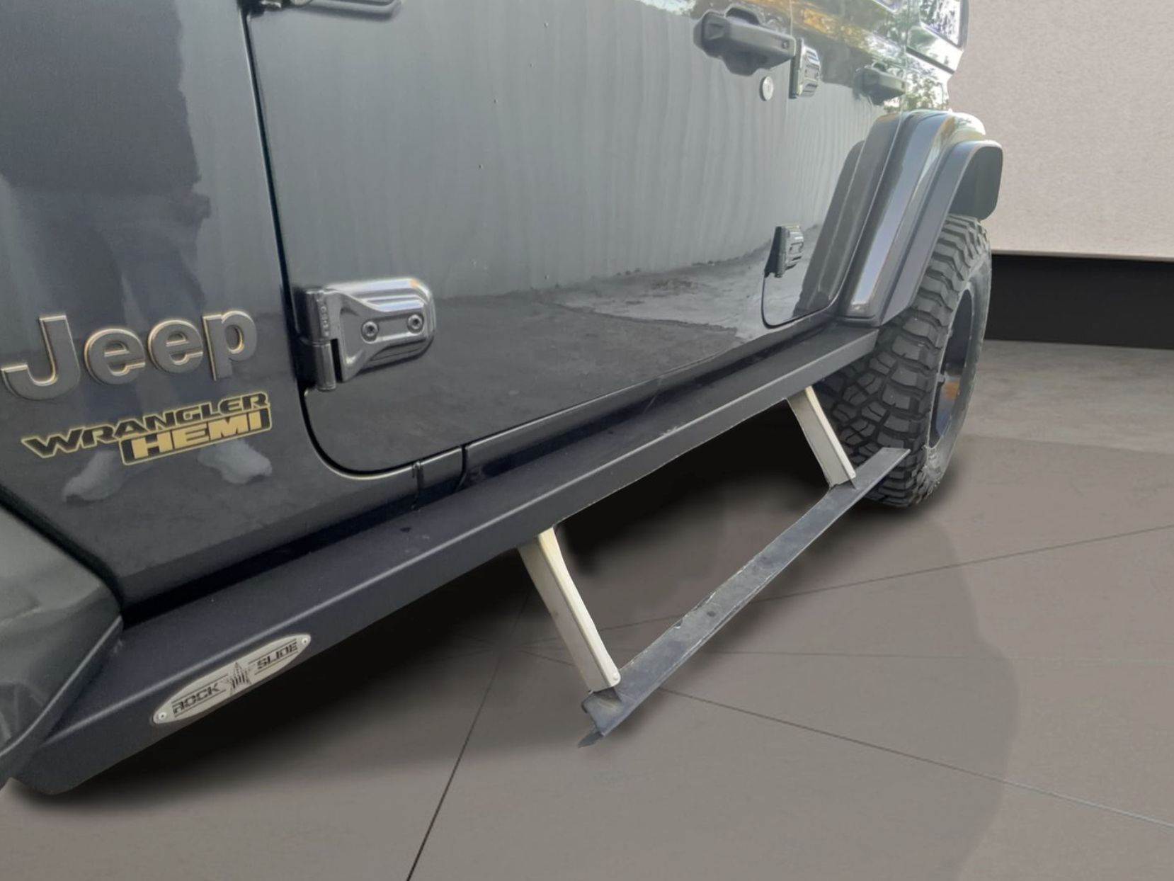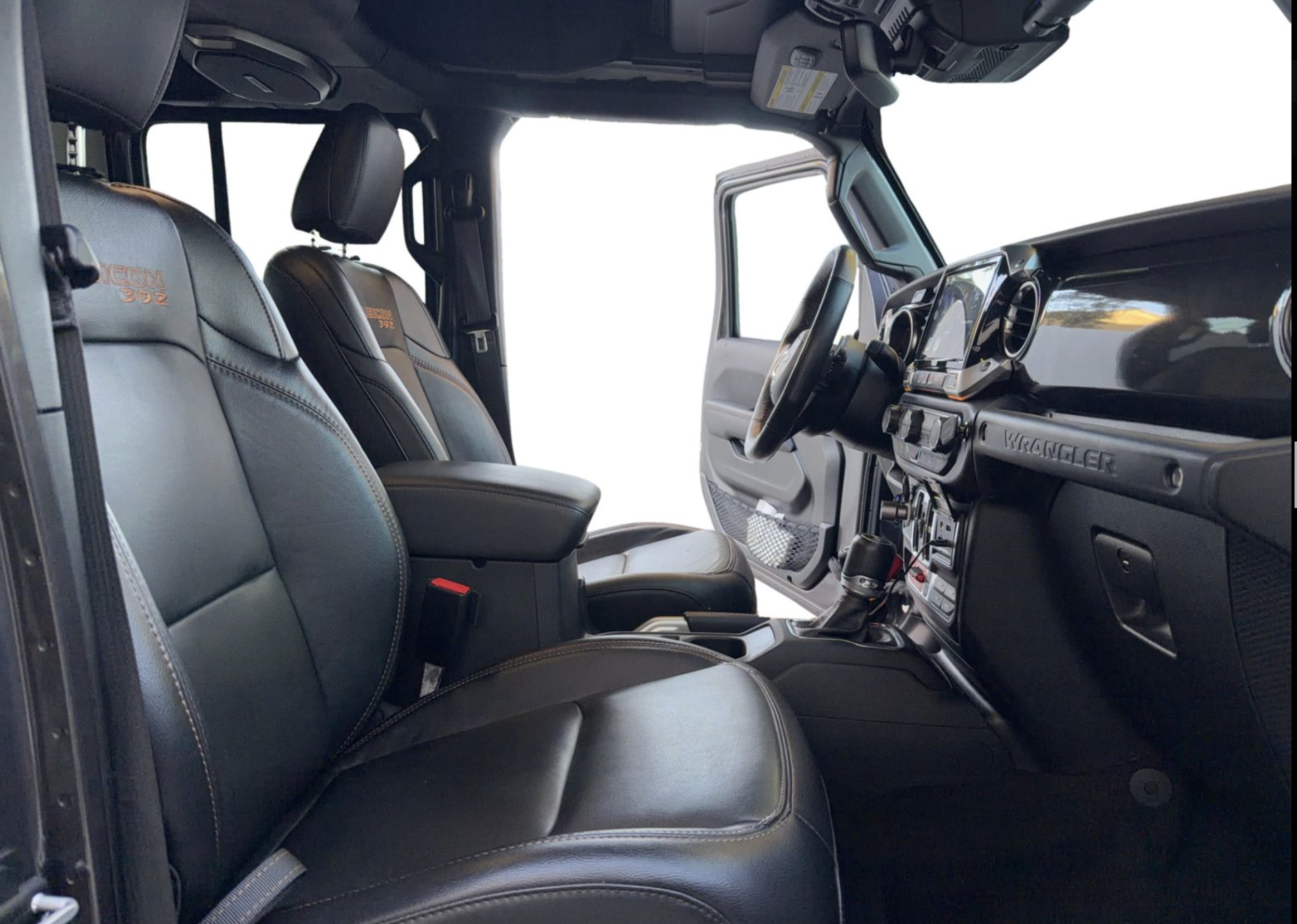 The exterior styling reflects the Rubicon 392’s bold intentions, featuring the signature Wrangler silhouette with a performance twist. The gray finish pairs perfectly with aggressive fender flares, a sport‑inspired hood with heat extractors, and a front grille that hints at the raw power beneath. Heavy-duty equipment, such as stout bumpers, recovery hooks, and oversized all-terrain tires, bolsters its capability, while removable doors and roof panels ensure an immersive open-air experience when adventure calls. The Rubicon 392’s presence is unmistakable — rugged yet refined, ready for trail challenges or everyday driving alike.