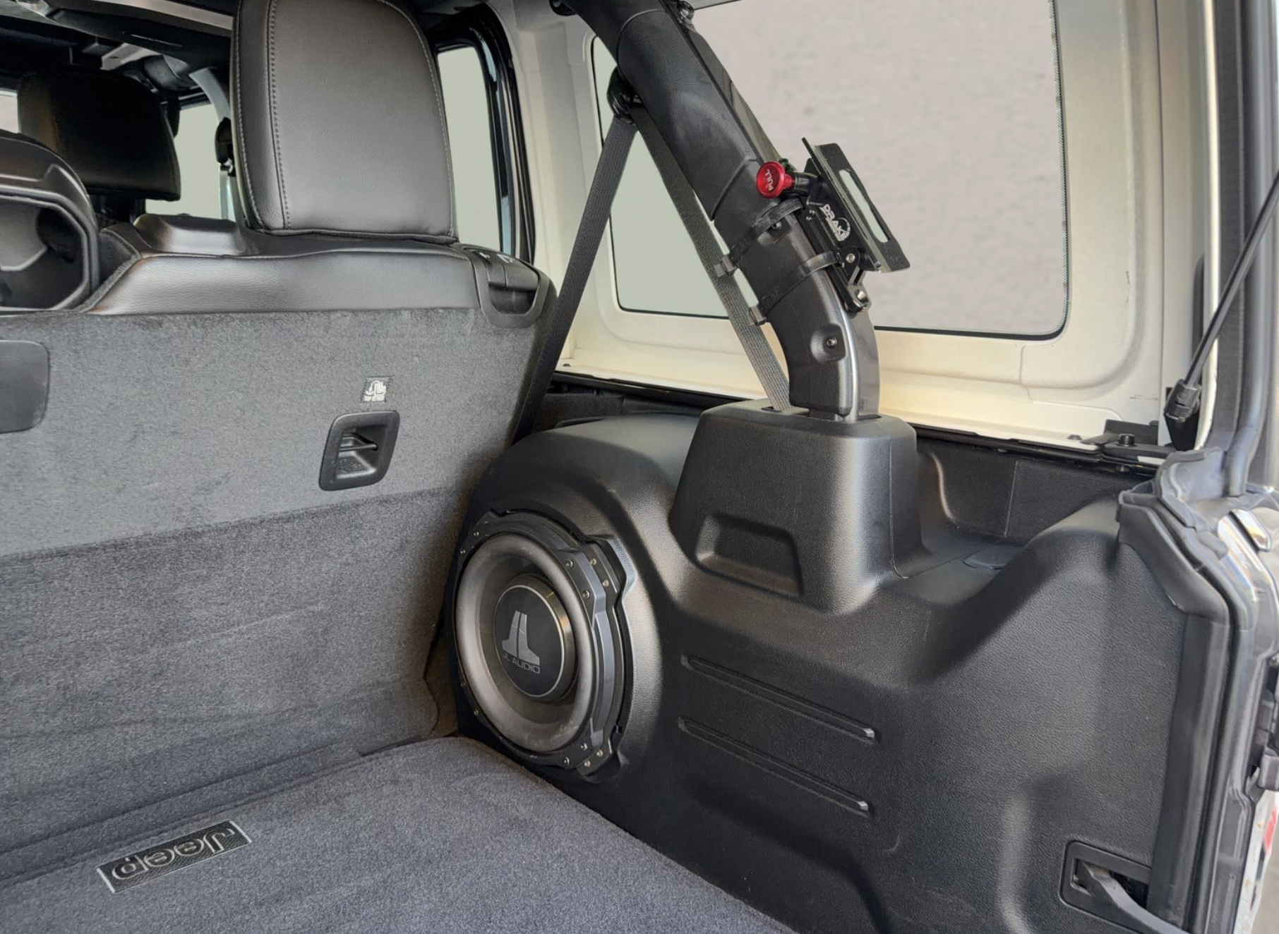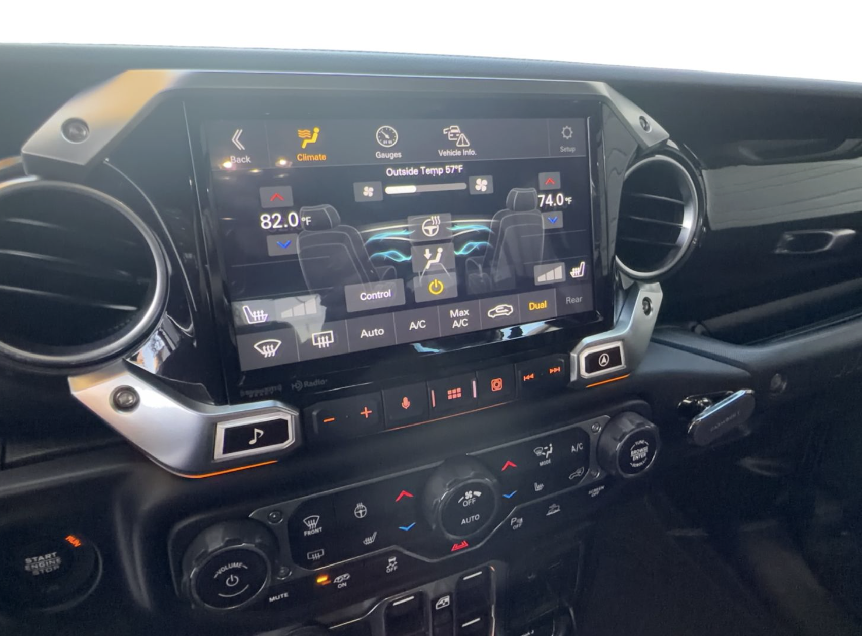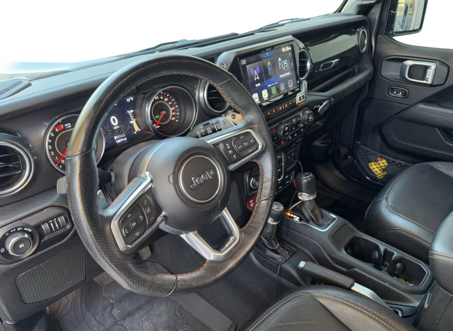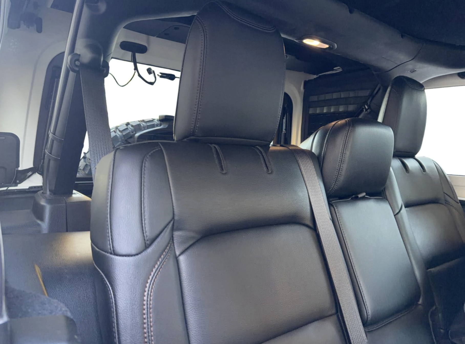Inside, the cabin is designed to balance comfort with durability for both daily use and serious trail excursions. The black interior features supportive seats with premium upholstery, offering bolstering for spirited driving as well as longer journeys. The cockpit layout is intuitive and driver‑centric, with a clear instrument cluster, responsive touchscreen interface, and easily accessible controls for off‑road systems. Additional features such as a heated steering wheel, automatic climate control, and advanced connectivity options enhance comfort and convenience without detracting from the Wrangler’s purpose‑built character. Functional elements like heavy‑duty grab handles, weather‑resistant surfaces, and multiple storage options underline its readiness for active lifestyles.