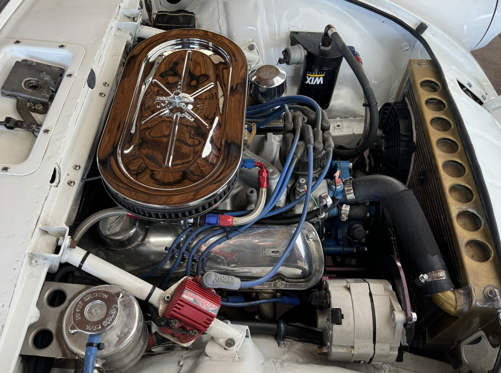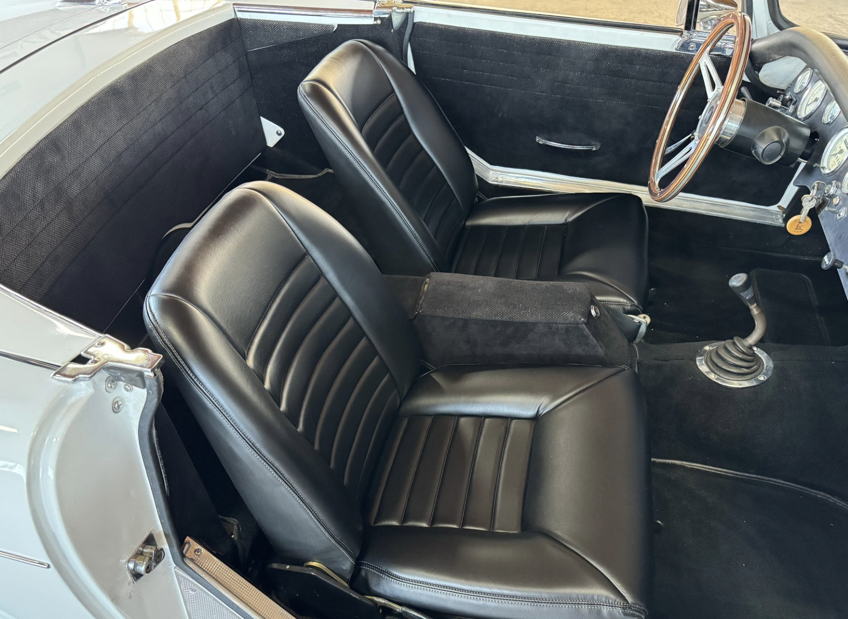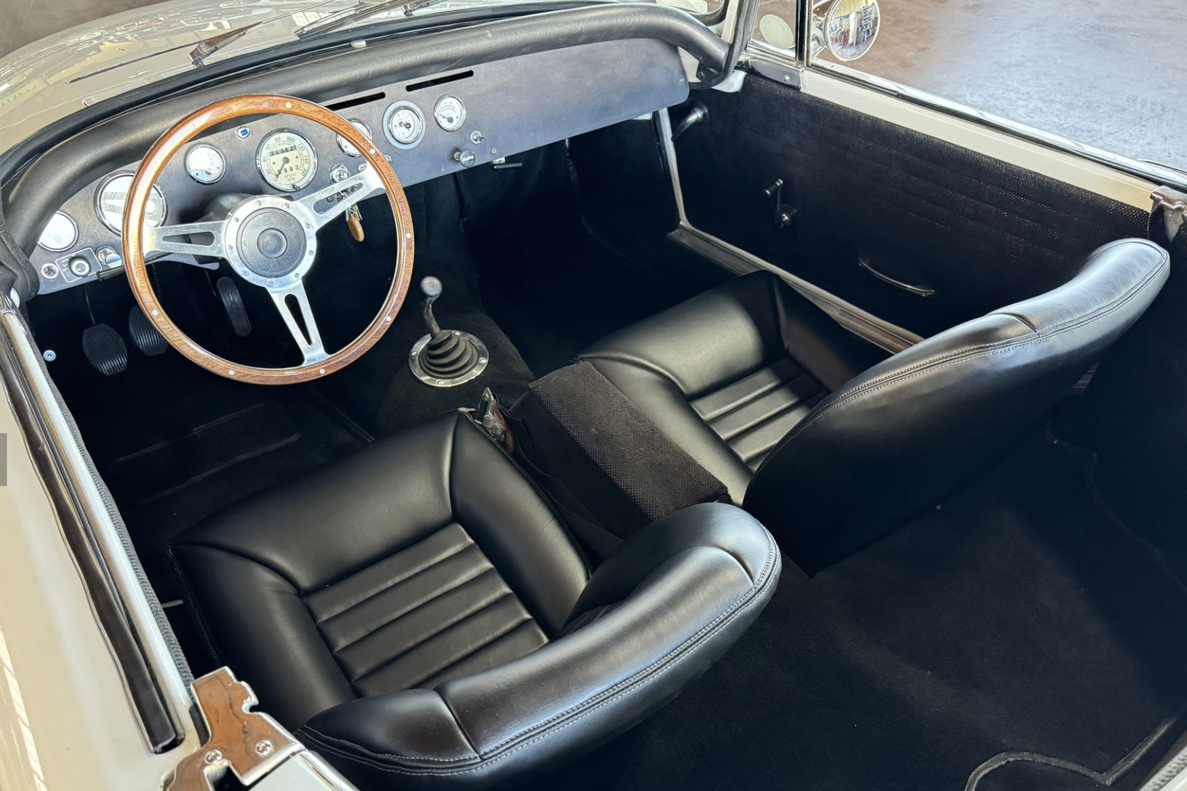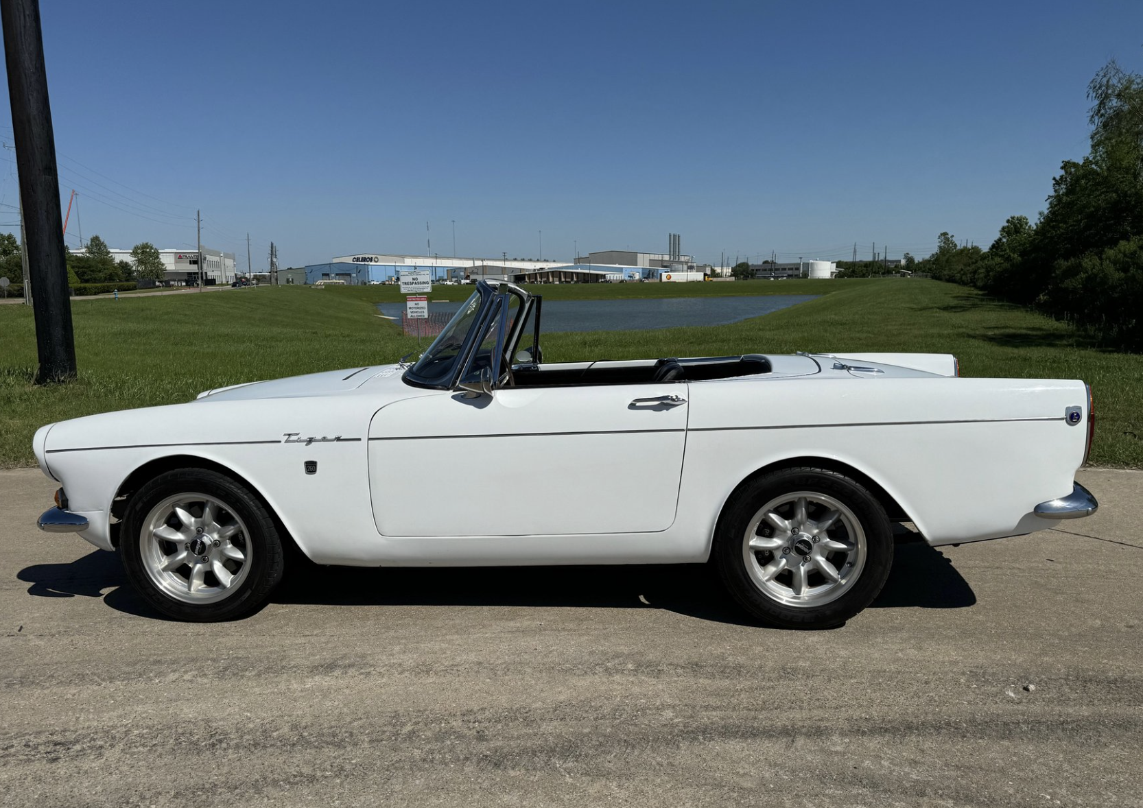 The White exterior of this 1965 Sunbeam Tiger radiates classic 1960s sports-car allure, with its graceful roadster silhouette, sculpted fenders, and compact proportions that hint at the power underneath. The body showcases the proper Tiger-specific cues, including correct badging, brightwork, and trim elements. Chrome bumpers, polished details, and the distinctive front fascia highlight the car’s period-correct character. Sitting on period-appropriate wheels wrapped in performance-oriented tires, the Tiger maintains an elegant yet aggressive stance that perfectly complements its driving personality. The finish and exterior presentation highlight the timeless styling that has made the Tiger a sought-after collector favorite.