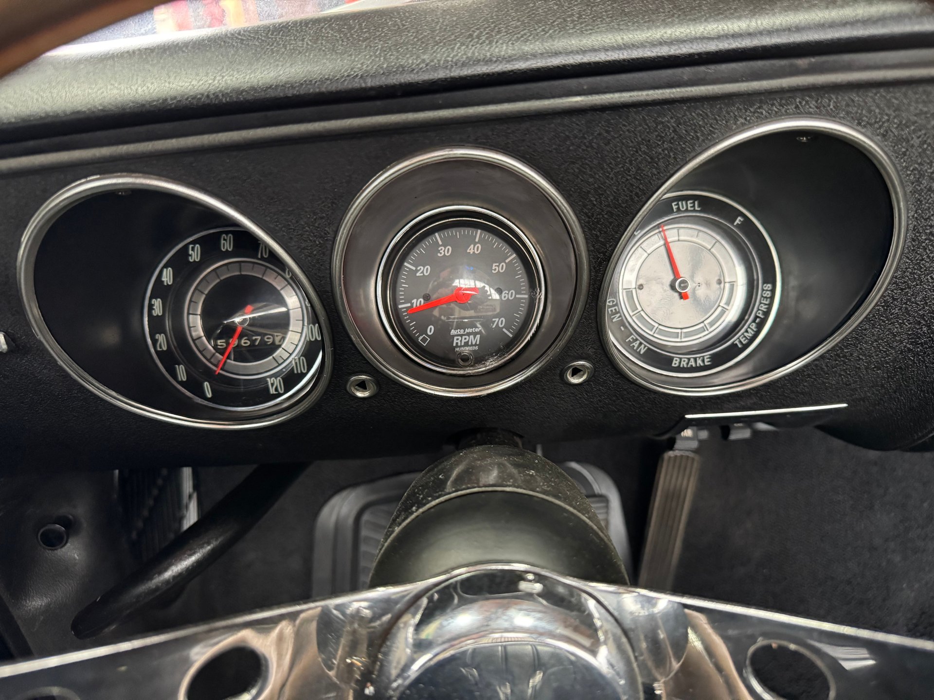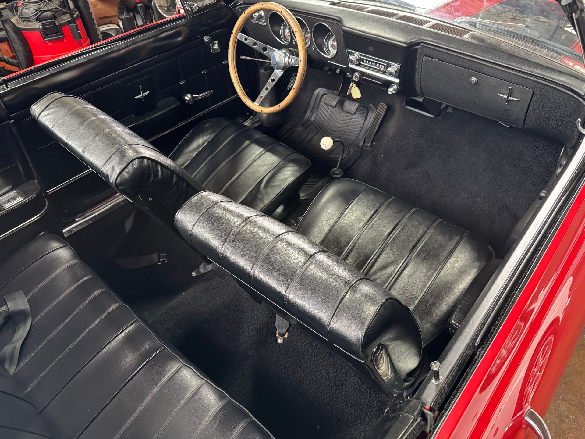 Inside, the cabin remains in the spirit of mid-’60s simplicity yet retains character. The seats are trimmed in matching black vinyl material, and the dash hosts a classic layout of gauges and controls. The steering wheel, shift lever, and door hardware are all in line with original styling. Practical touches include door map pockets and glovebox storage, making this Corvair comfortable and usable without unnecessary fuss.