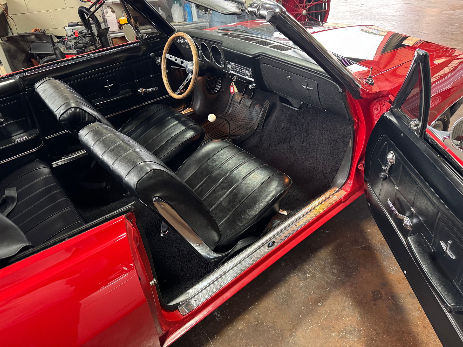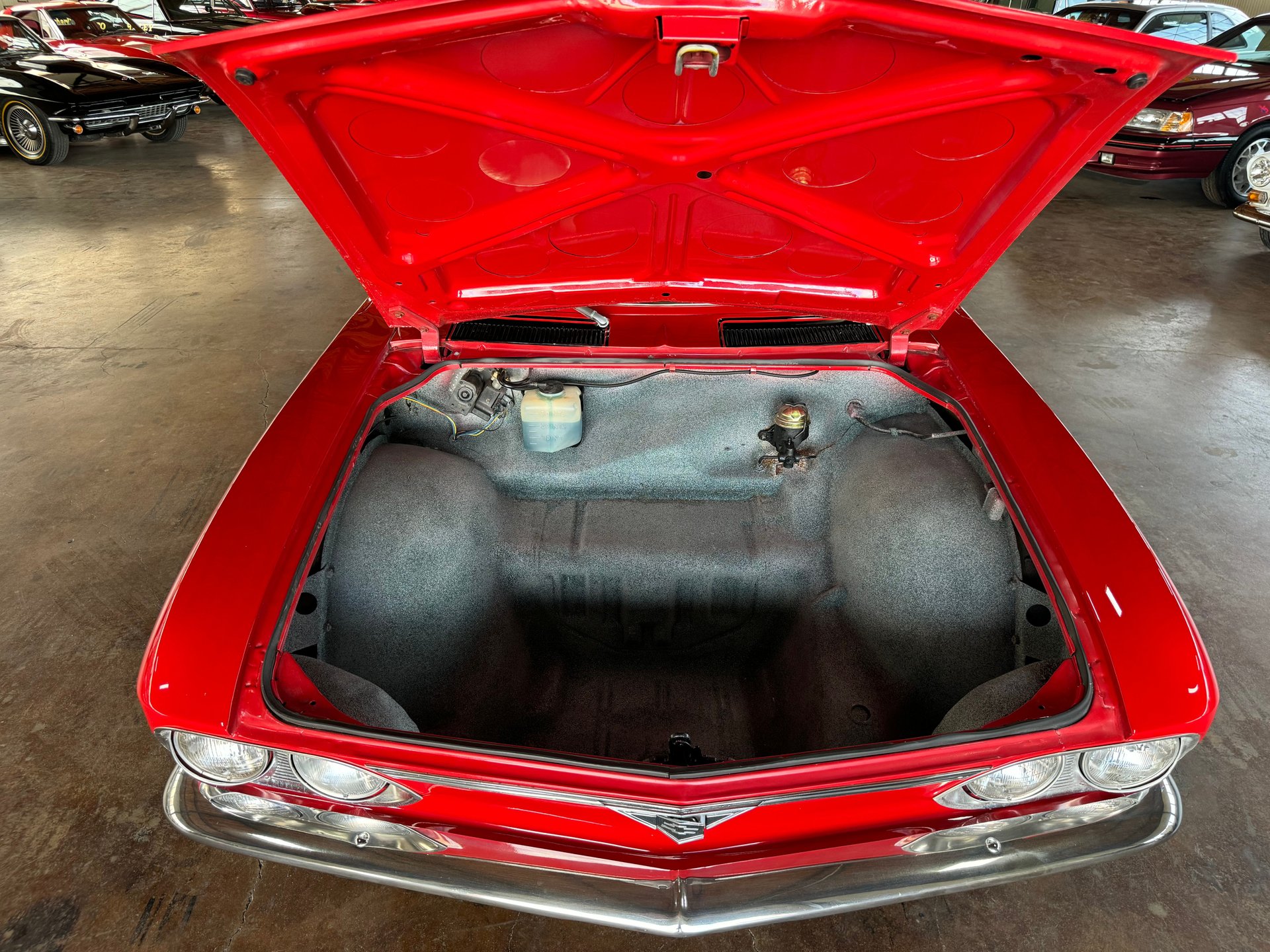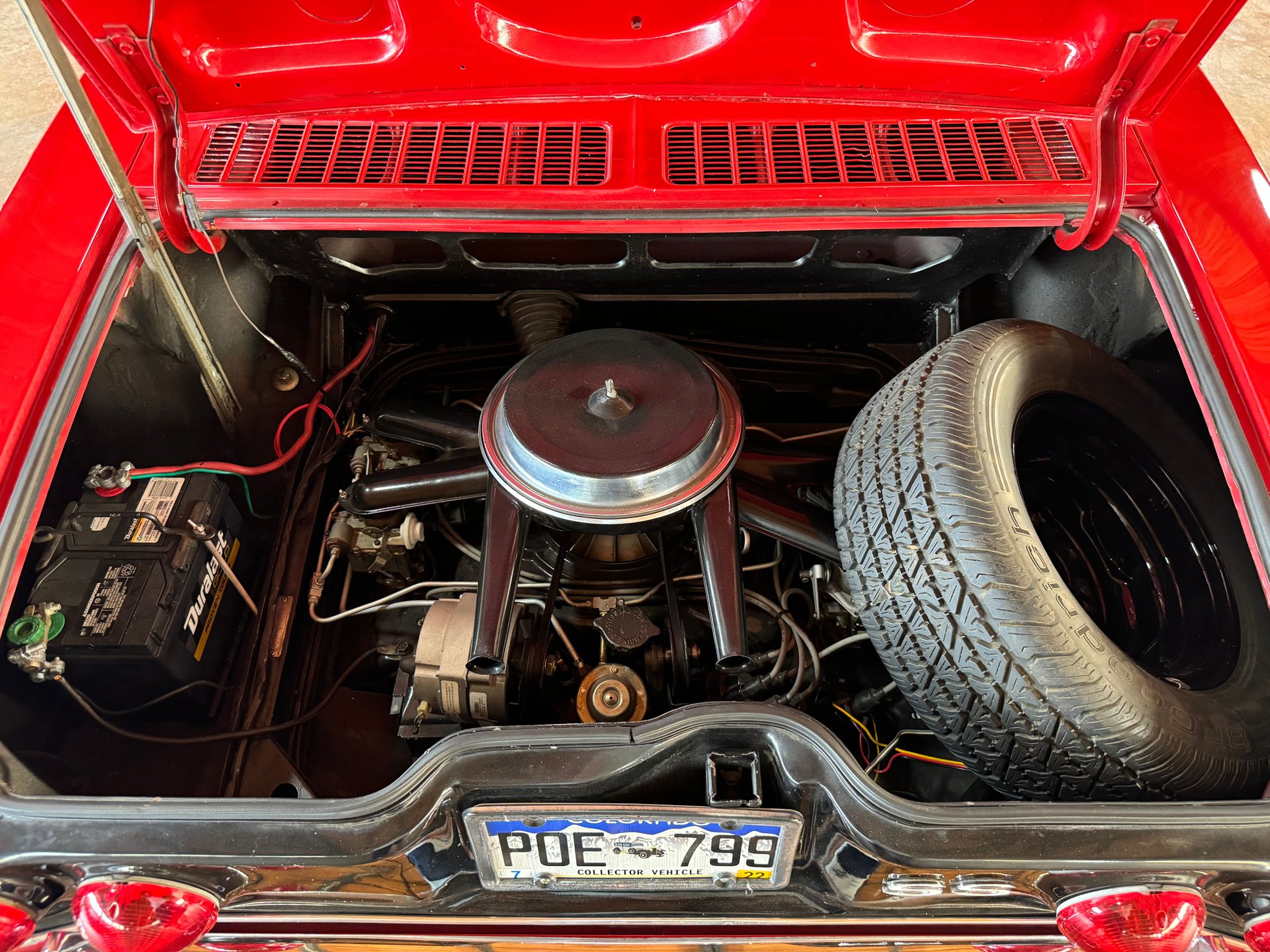 Under the rear access panels resides an air-cooled six-cylinder engine, producing approximately 140 horsepower with a 4×1-barrel carburetor setup. Its power is delivered through a 4-speed manual transmission, with the engine located behind the rear axle in true Corvair fashion. This configuration gives the car a unique driving feel, one that’s appreciated for its balance and lightweight agility.