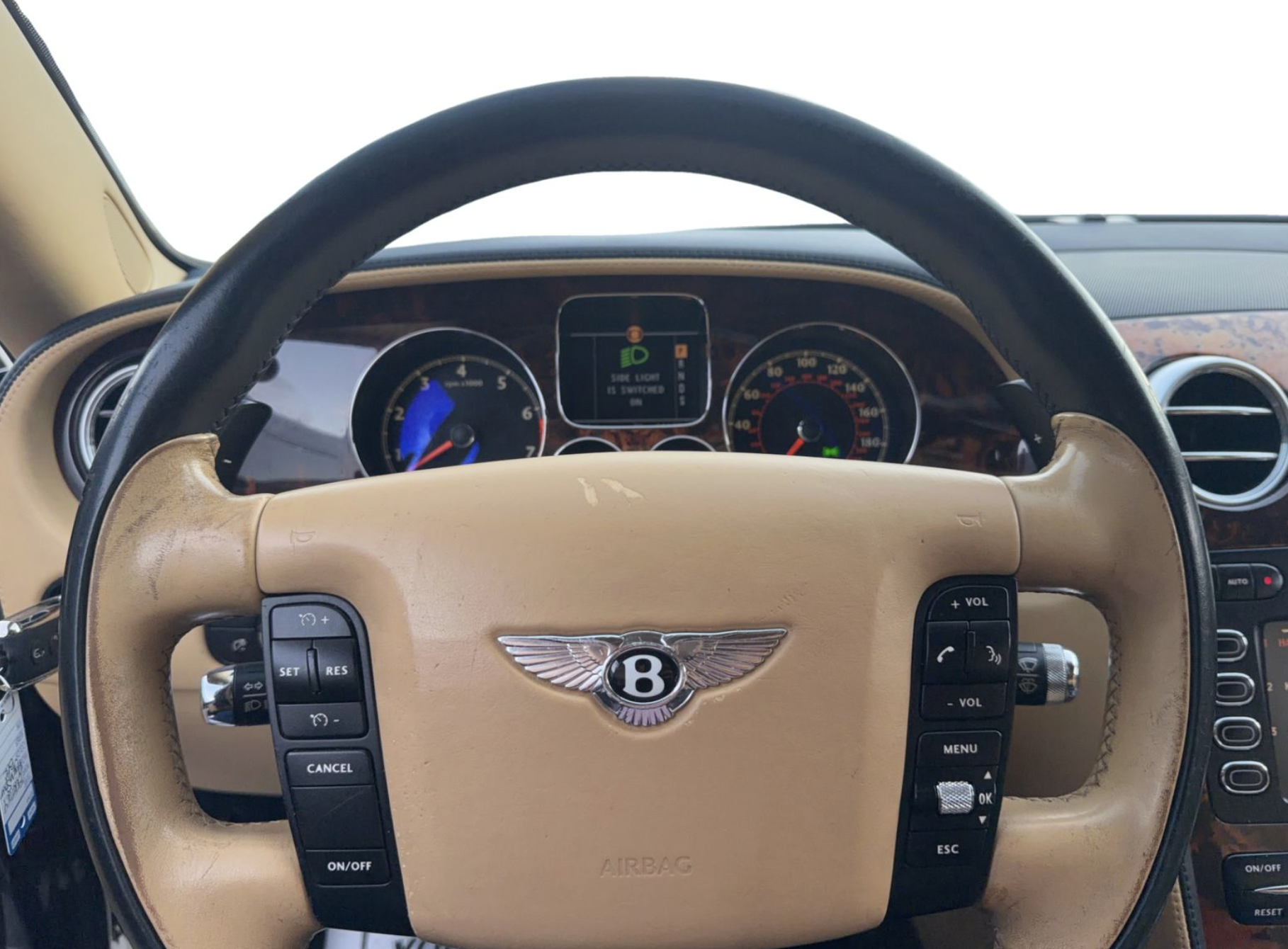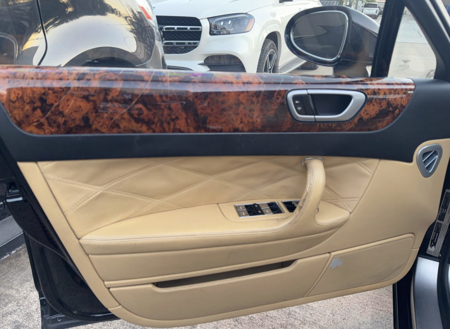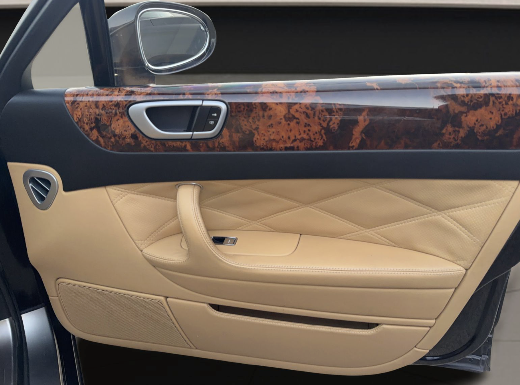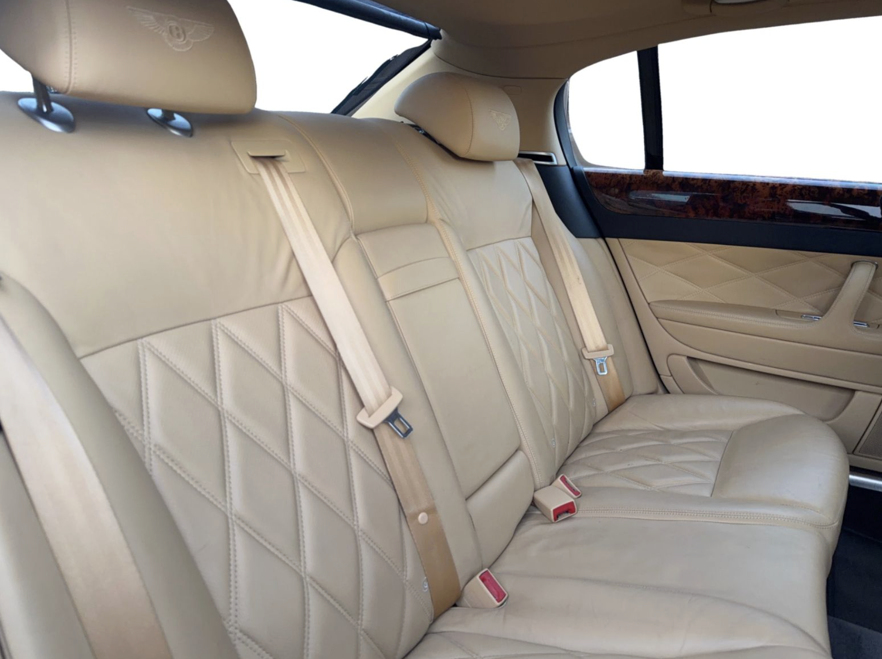 Inside, the Tan interior welcomes occupants with an atmosphere of luxury and comfort. Rich leather seating and handcrafted details reflect Bentley’s renowned commitment to artisanal quality. The spacious cabin offers generous legroom and premium appointments, including dual‑zone automatic climate control, premium sound system, wood and metal trim accents, and intuitive controls that elevate both driver and passenger comfort on every journey.