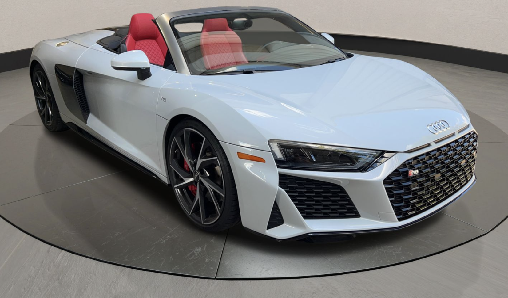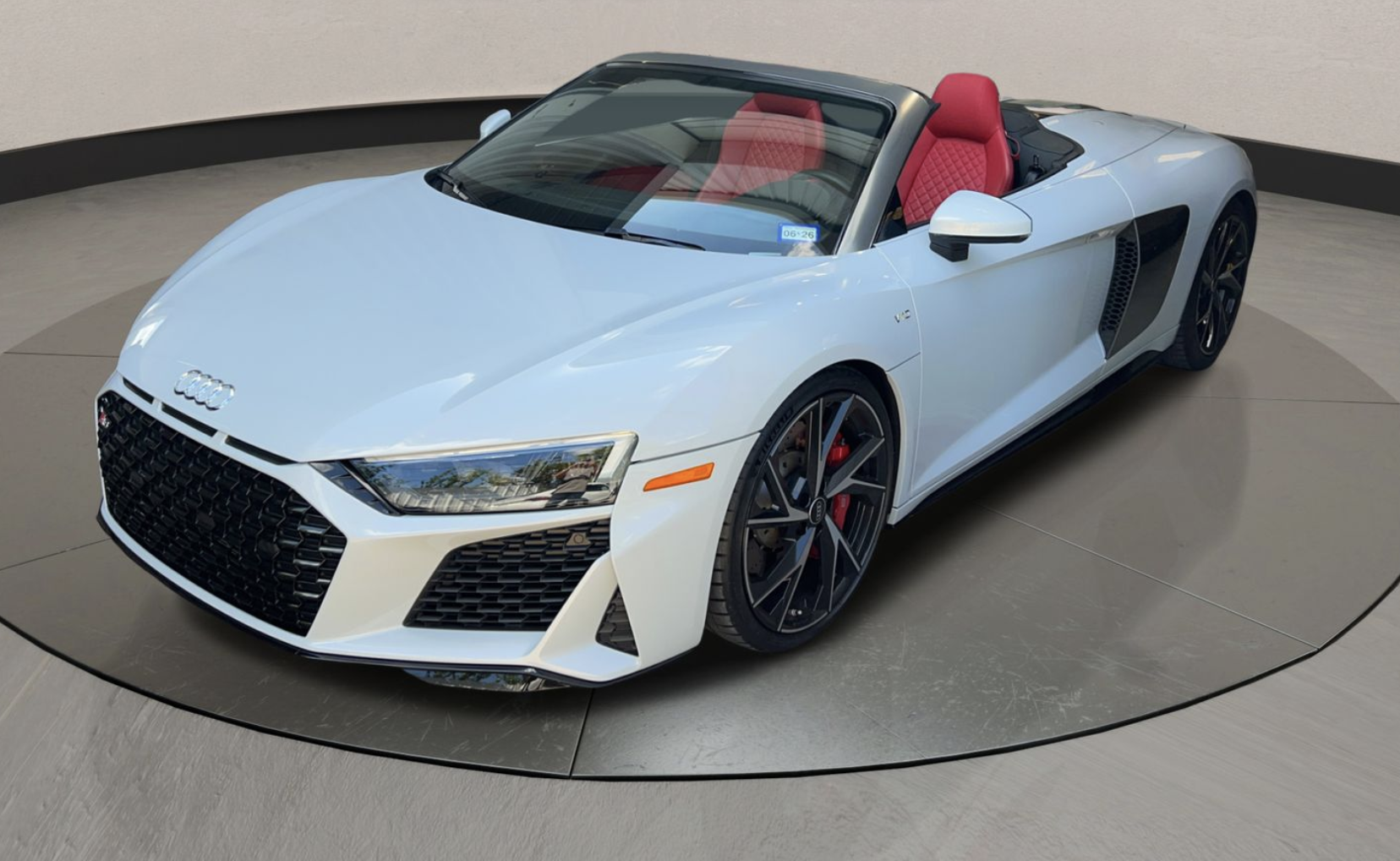 BK Auto Auctions presents this stunning 2022 Audi R8 5.2 V10 Performance Spyder, finished in a crisp white exterior over a striking red leather interior. This beautifully maintained supercar is powered by a naturally aspirated 5.2-liter V10 engine paired with a 7-speed S tronic dual-clutch automatic transmission, delivering power to the rear wheels. Showing just 6,428 miles, this R8 Spyder is offered with a Clean Title and is being sold AS-IS with no warranty.