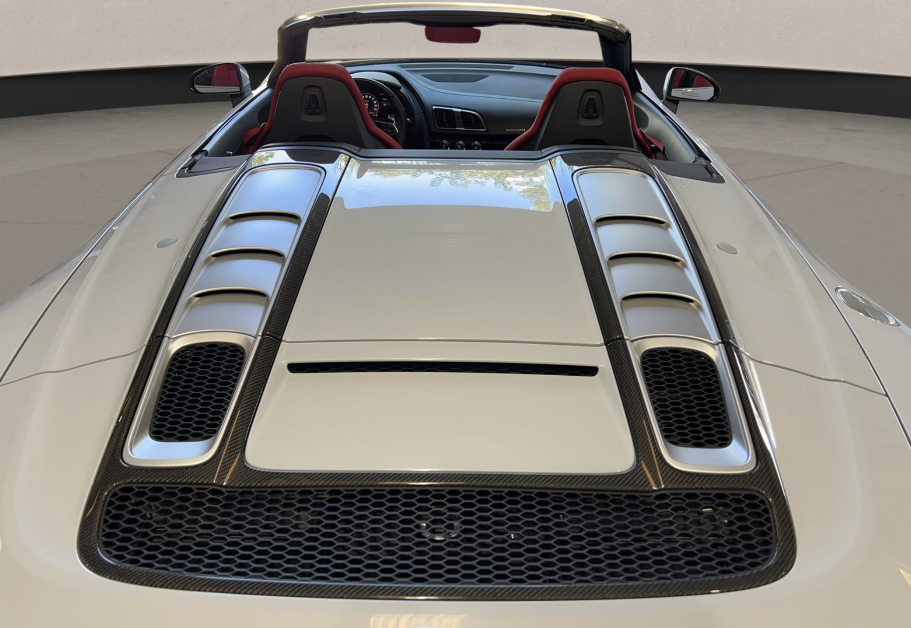 This gorgeous R8 Spyder features a sleek white finish that accentuates its low, sculpted supercar profile. Signature Performance styling includes aggressive front and rear fascias, aerodynamic side blades, LED lighting, and dual exhaust outlets. The removable soft top operates smoothly and complements the car’s bold character, while factory alloy wheels complete the athletic stance. The exterior presents as both refined and purposeful, consistent with the R8’s reputation for blending exotic design with everyday usability.