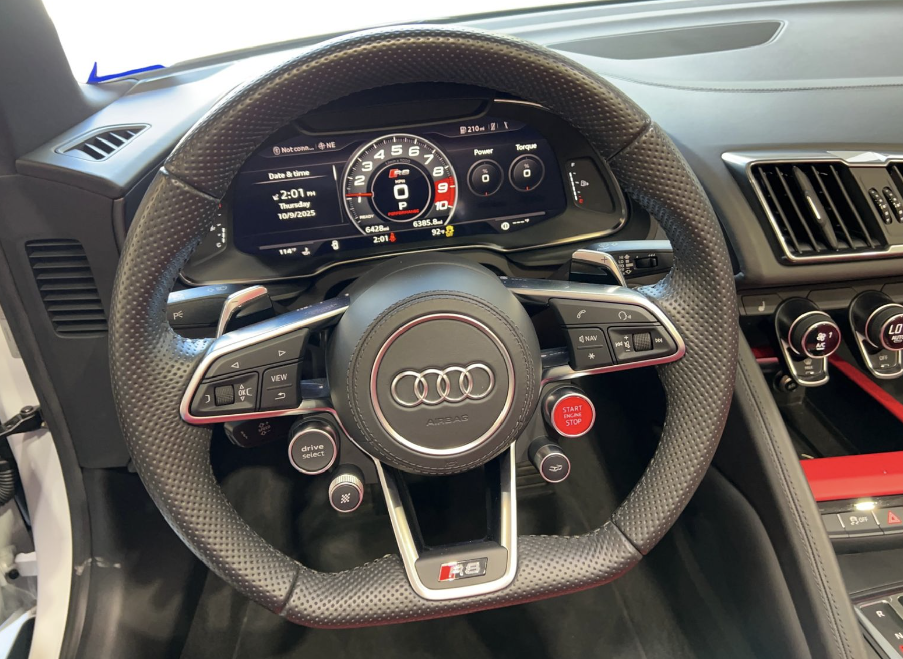 At the heart of this R8 Spyder lies the renowned 5.2-liter naturally aspirated V10, producing 562 horsepower and 406 lb-ft of torque. Paired with the quick-shifting 7-speed dual-clutch transmission, the R8 delivers exceptional throttle response, rapid acceleration, and the unmistakable sound of a high-revving V10 engine. Rear-wheel drive enhances driver engagement, while the chassis and suspension tuning offer a precise and confidence-inspiring driving experience befitting a modern supercar.