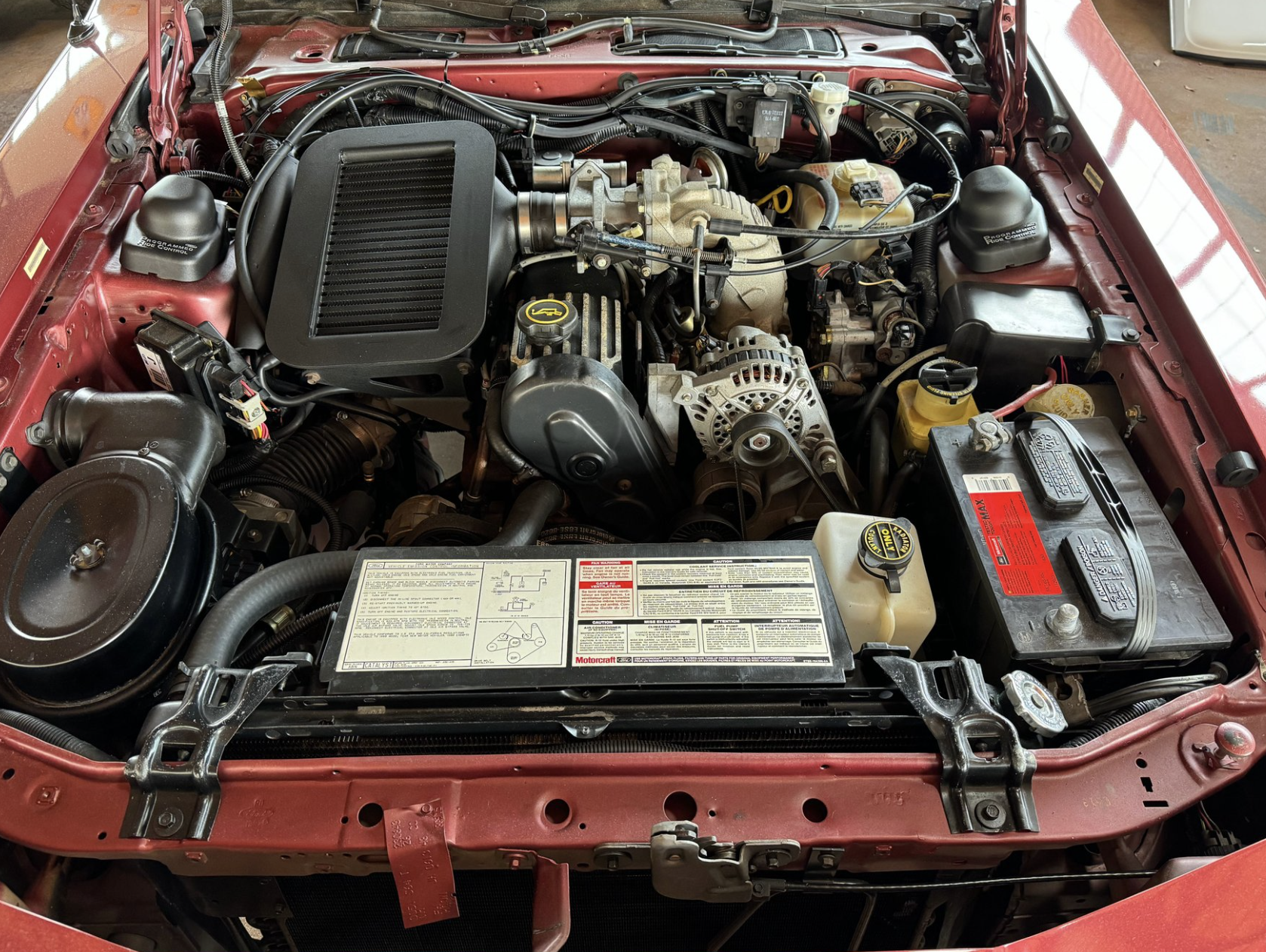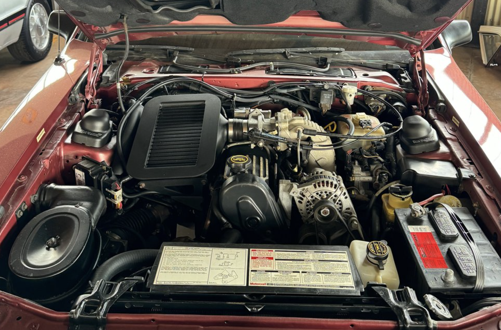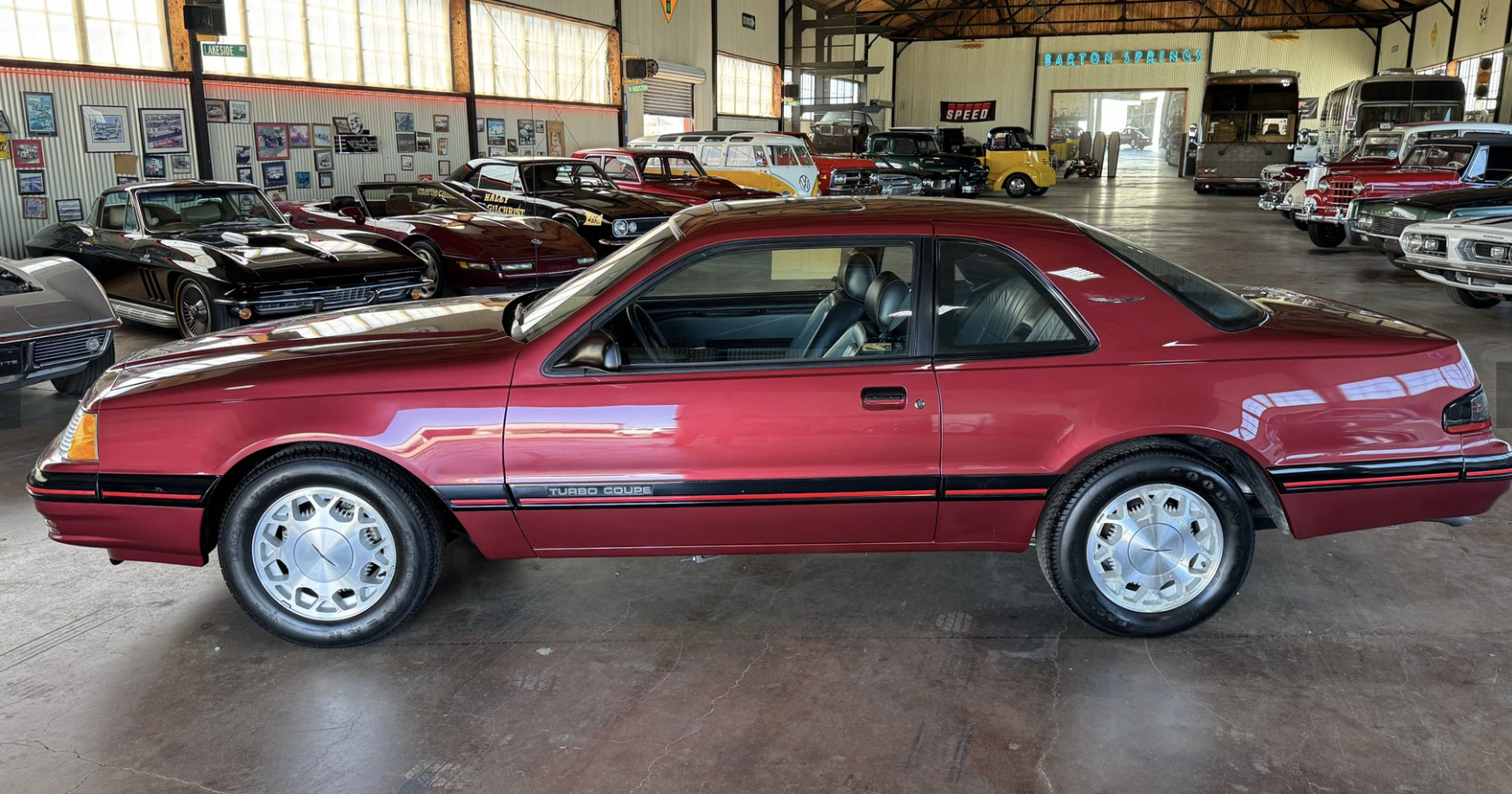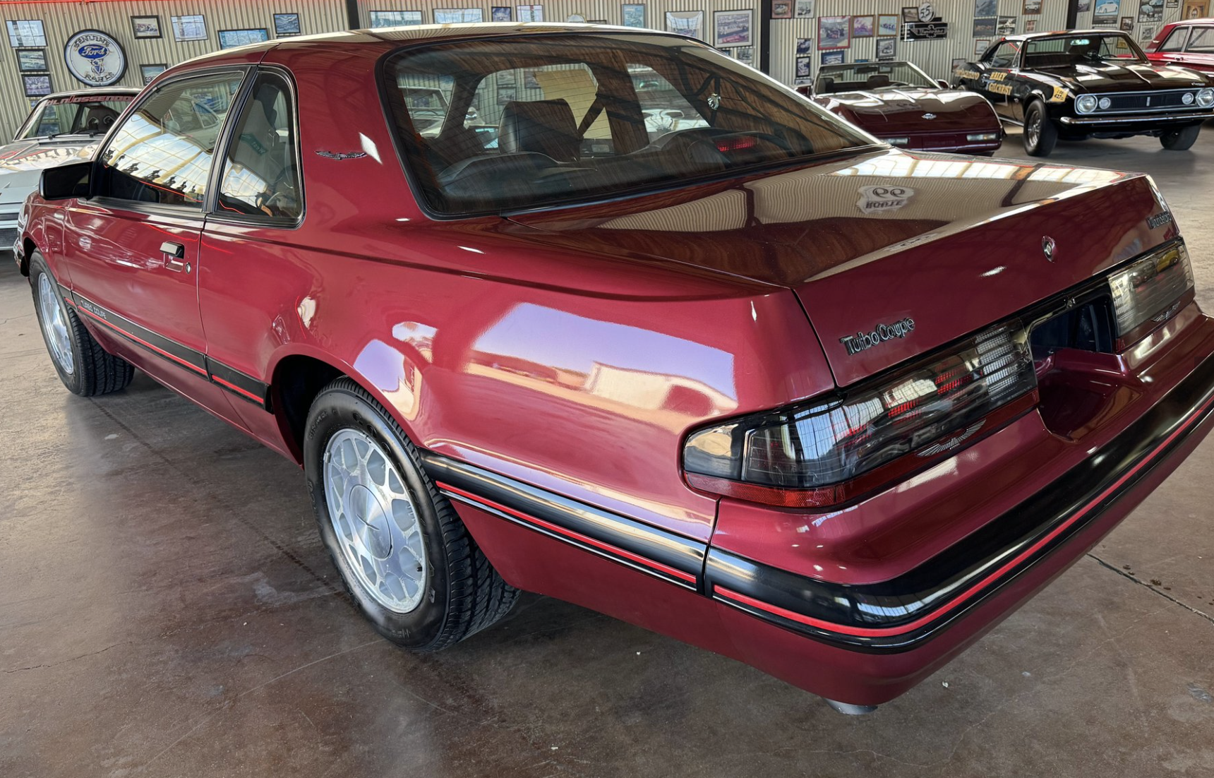 Power comes from the factory 2.3L turbocharged and intercooled inline-4 engine, producing 190 horsepower and 240 lb-ft of torque when paired with the sought-after Borg-Warner T-5 five-speed manual transmission. This drivetrain delivers strong mid-range performance, responsive boost, and a distinctly engaging driving experience. The Turbo Coupe’s suspension and chassis tuning provide confident handling and stability, making it one of the most advanced American performance coupes of its era.