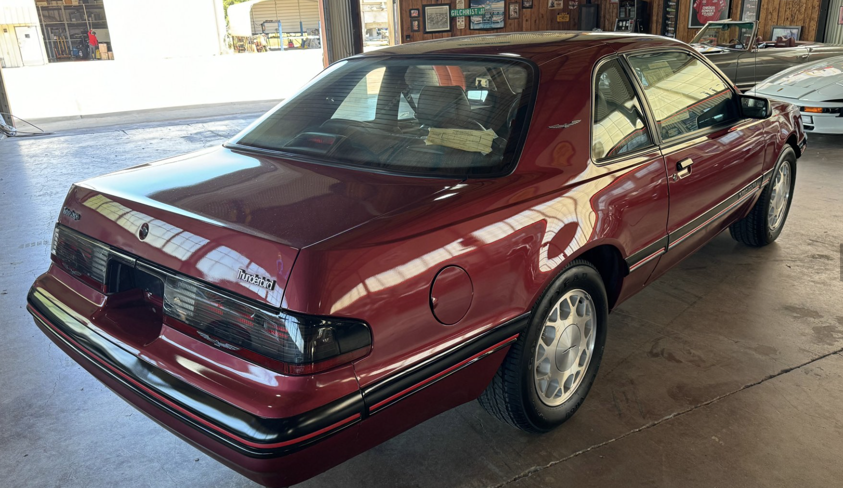 This 1988 Thunderbird Turbo Coupe features the iconic “Aero Bird” body design, highlighted by its smooth aerodynamic lines, composite headlamps, ducted hood, and low-drag front fascia. The car retains its factory alloy wheels and signature Turbo Coupe stance, giving it a sporty yet refined presence. The exterior presents well, showcasing the clean bodywork and distinctive styling cues that made the Turbo Coupe the performance leader of the Thunderbird family.