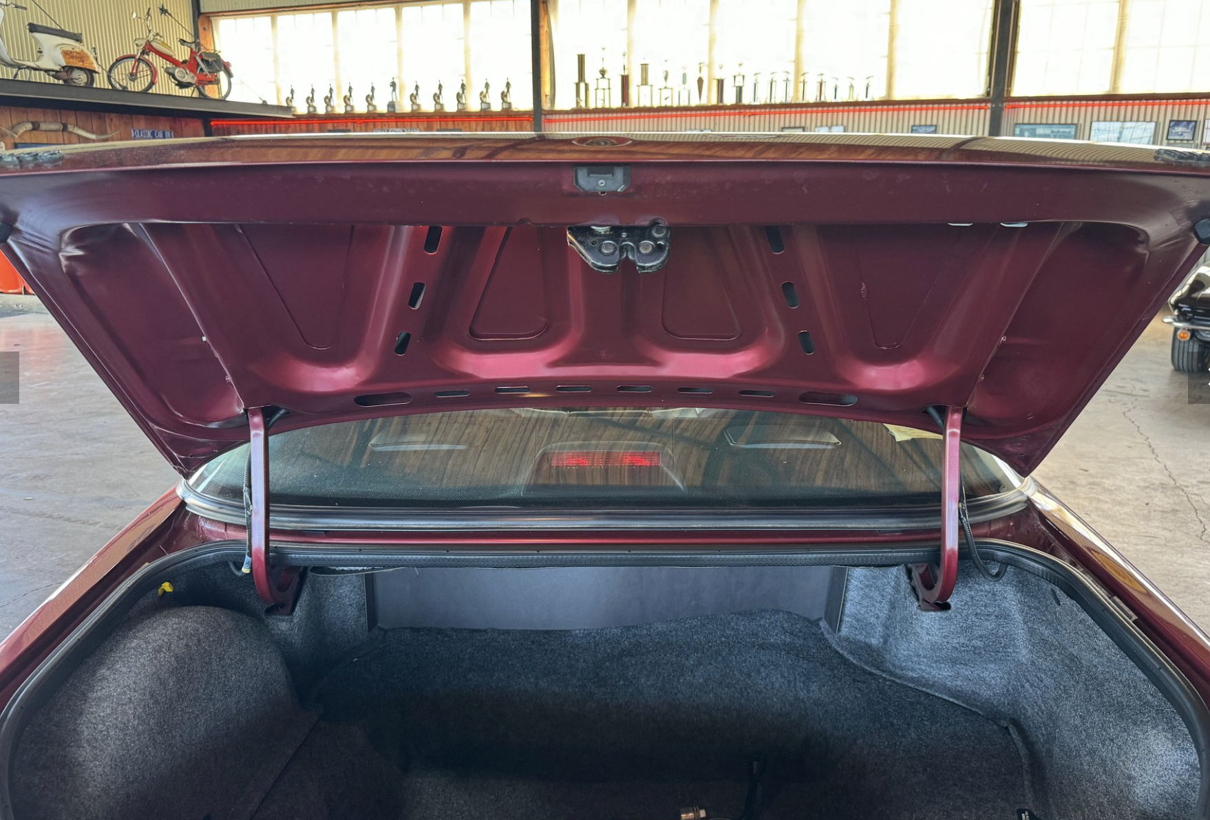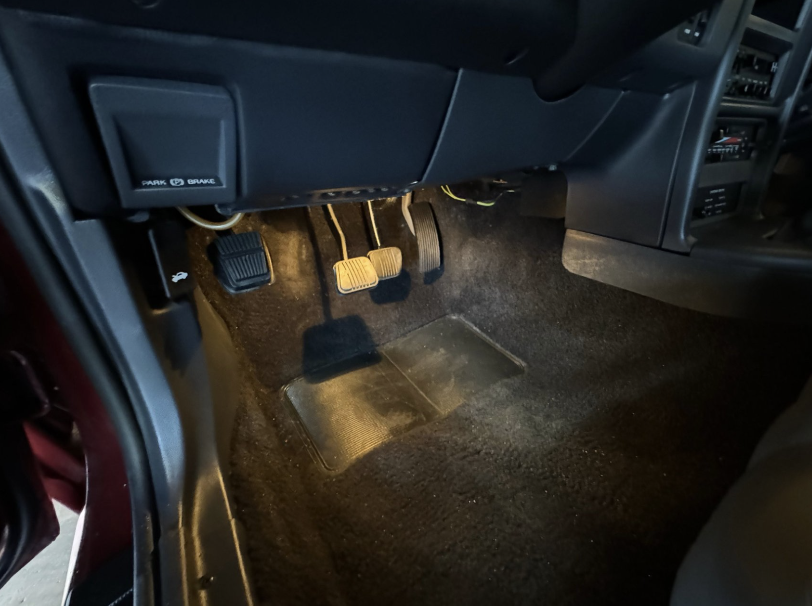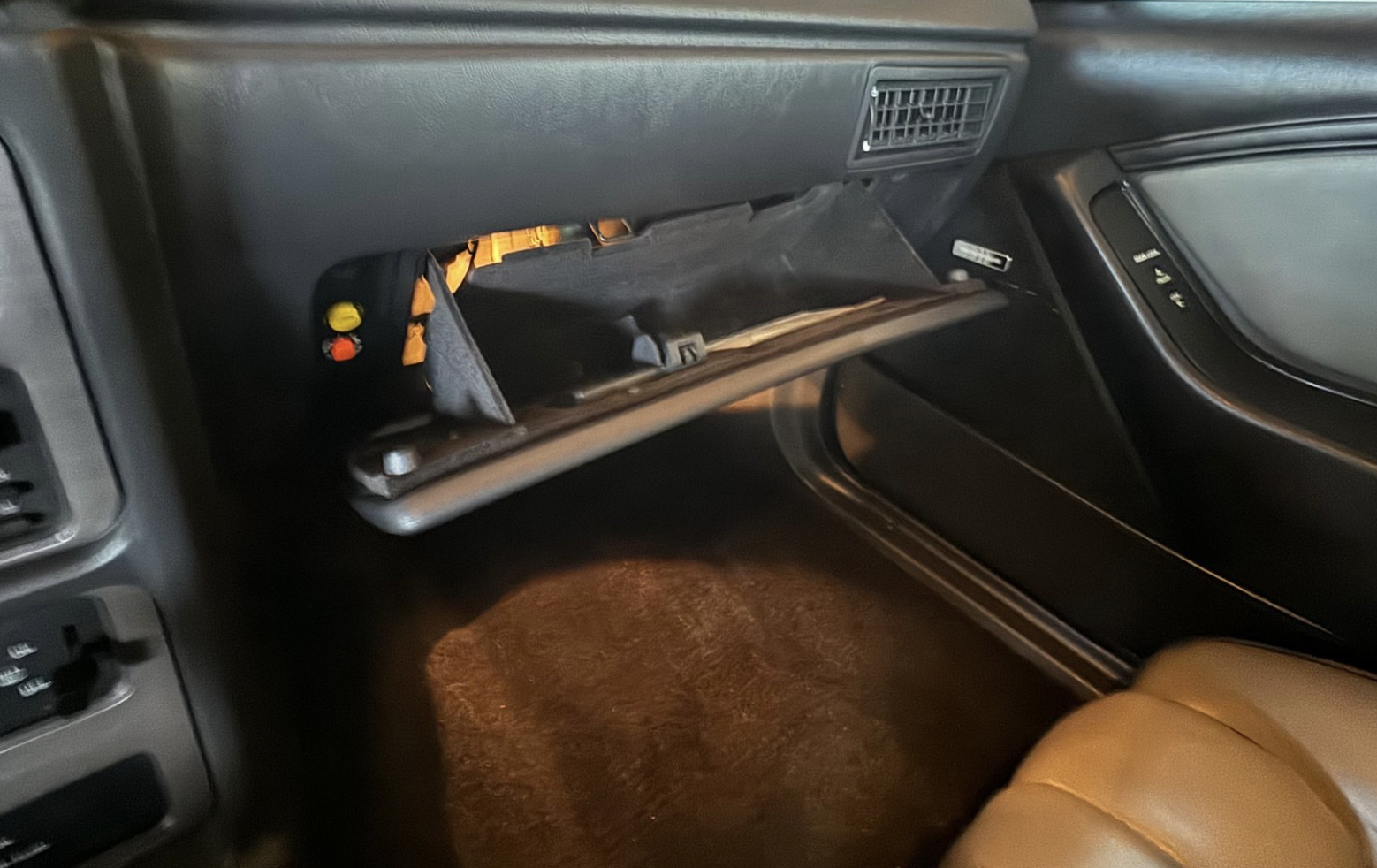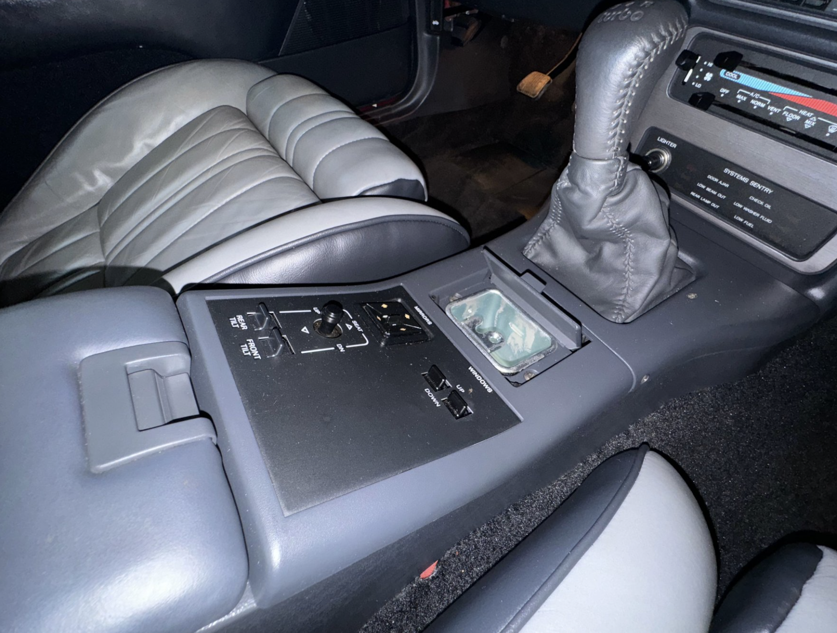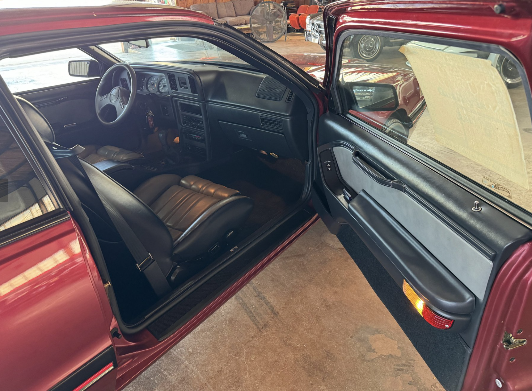 Inside, the Turbo Coupe offers a well-preserved and comfortable cabin equipped with articulated front sport bucket seats and a supportive rear bench. Standard convenience features include power windows, power locks, power mirrors, automatic climate control, and a full instrument cluster with a factory boost gauge. The cabin balances 1980s luxury with driver-focused ergonomics, maintaining a period-correct look and feel throughout.