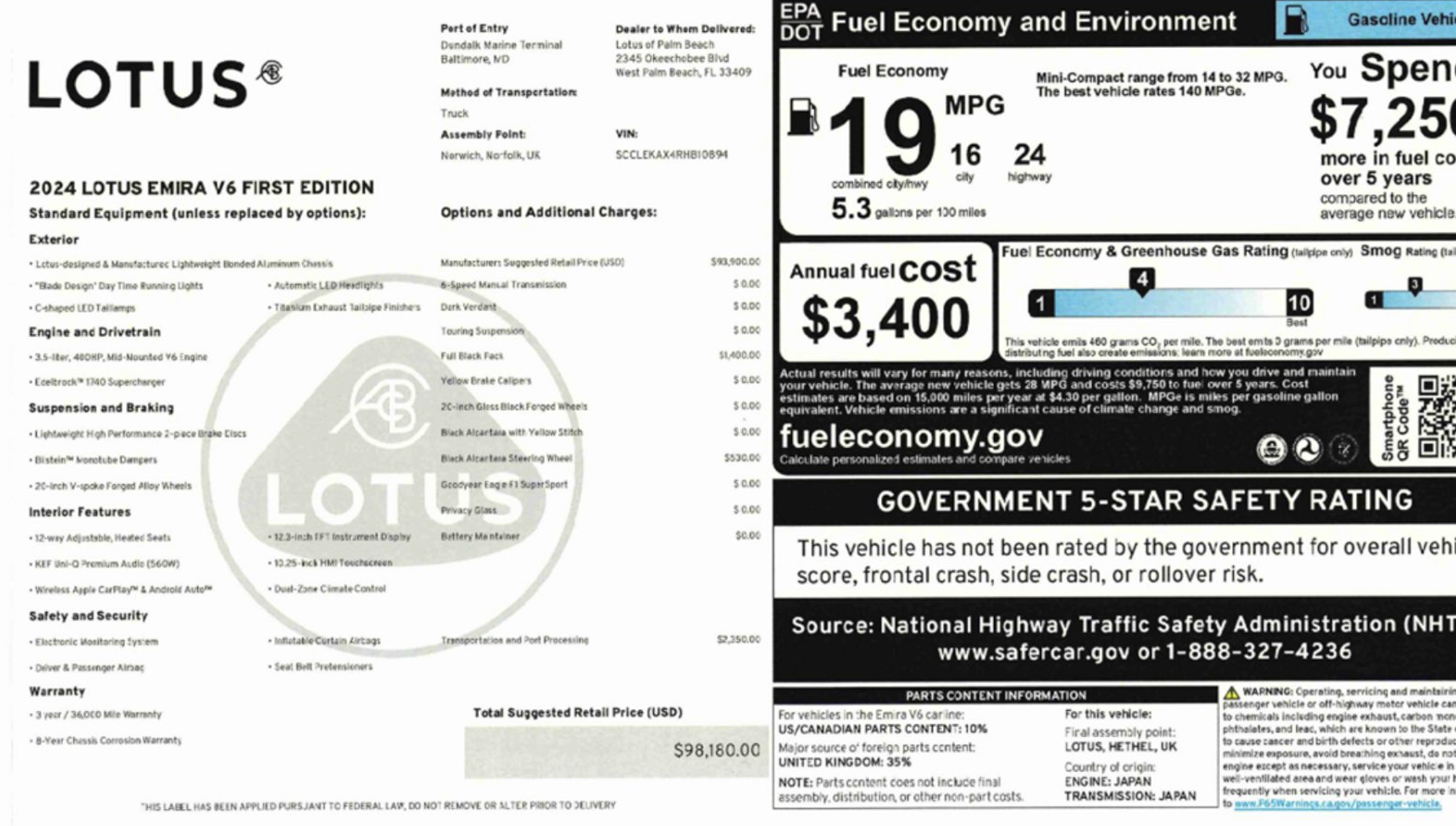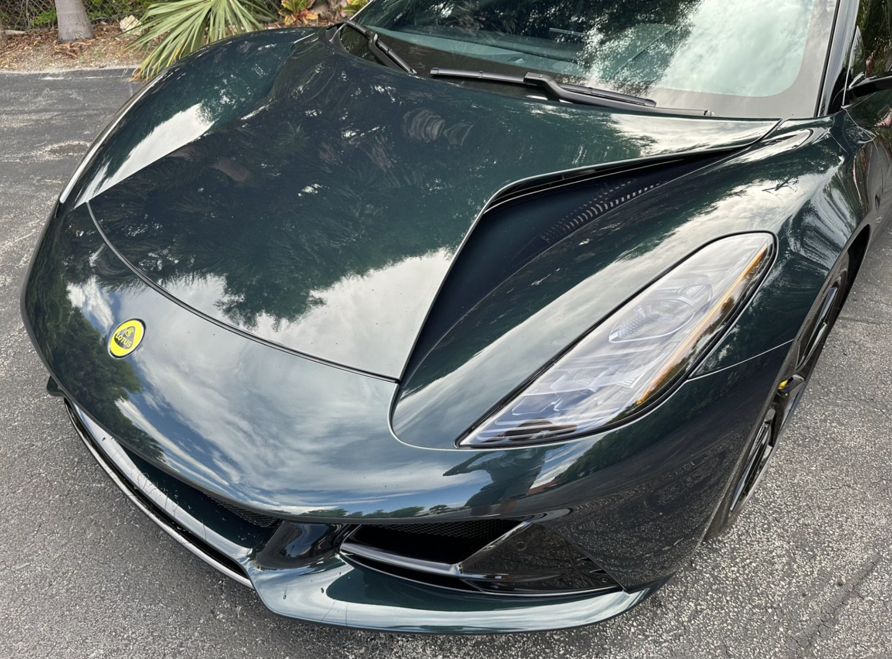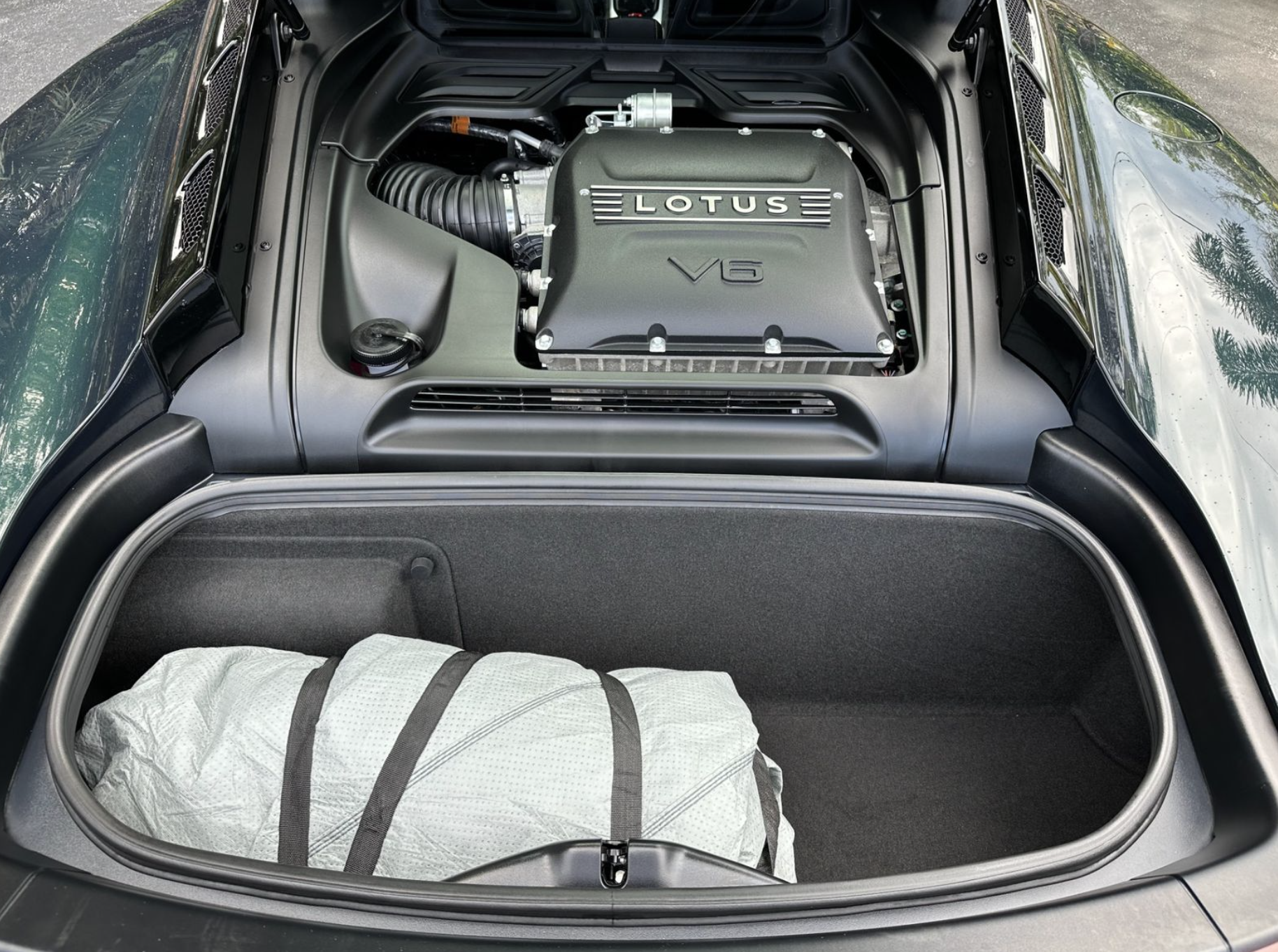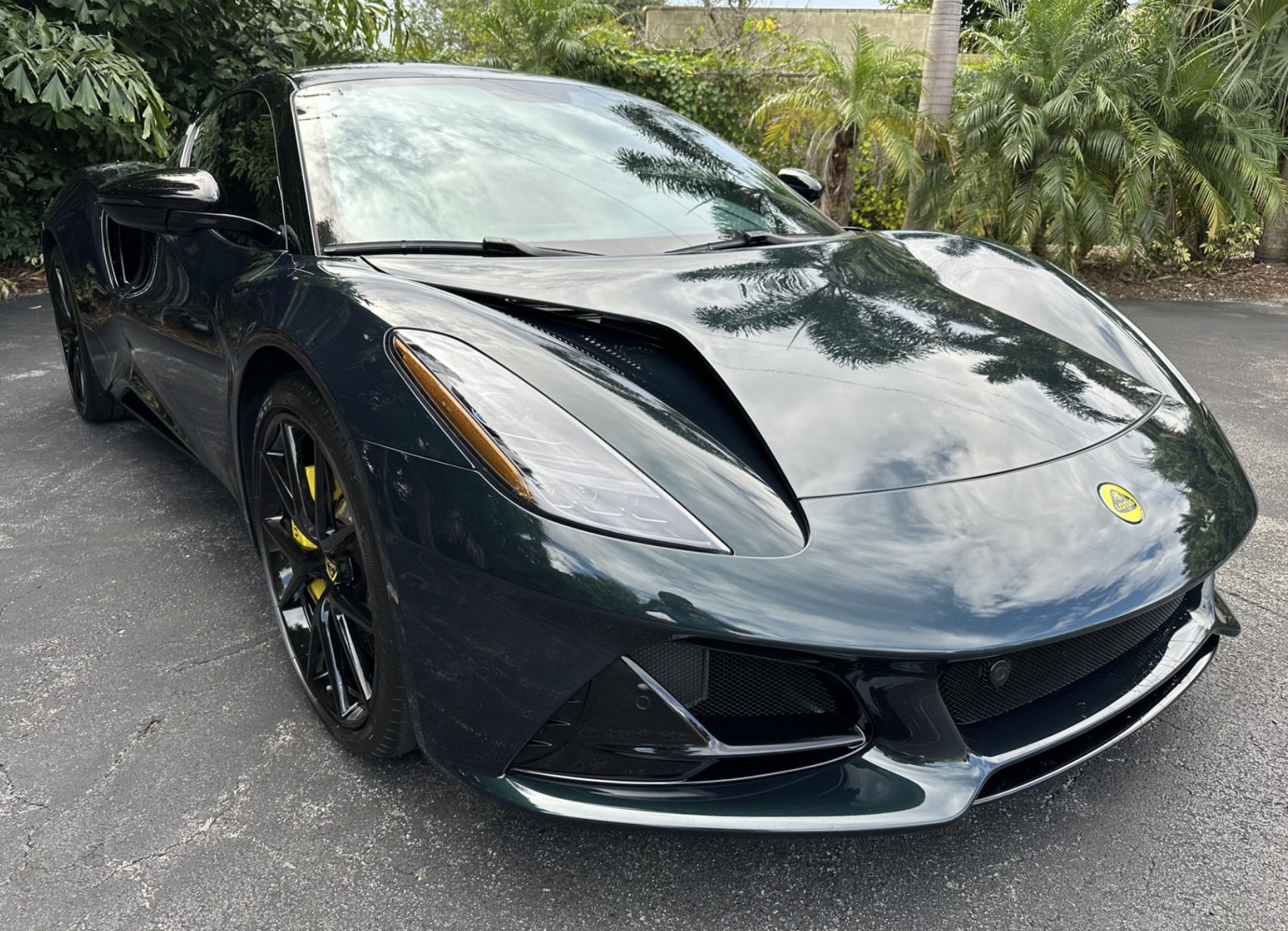 BK Auto Auctions presents this 2024 Lotus Emira V6 First Edition, finished in a striking Dark Verdant exterior over a premium black leather interior. This Emira is powered by a mid-mounted 3.5 L supercharged V6 engine producing 400 hp/ 310 lb-ft of torque, paired with a 6-speed manual transmission and rear-wheel drive. With only 3,000 miles showing and a clean title, this Emira is offered in excellent condition and ready for an enthusiast seeking a modern, high-performance British sports car. With a clean title and meticulous presentation, this Emira stands as a pristine example of the highly sought-after First Edition, offering an exceptional blend of modern engineering and pure sports-car engagement.