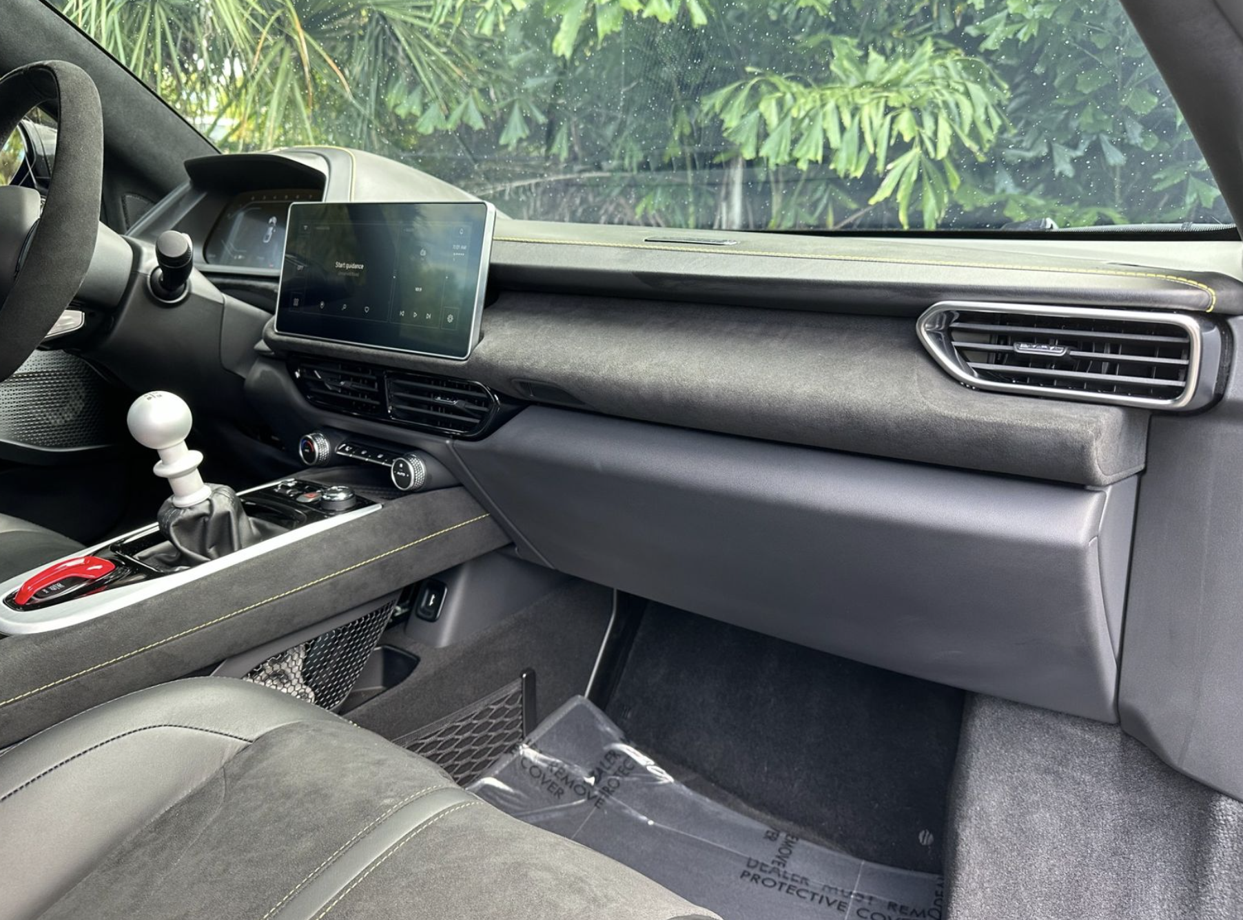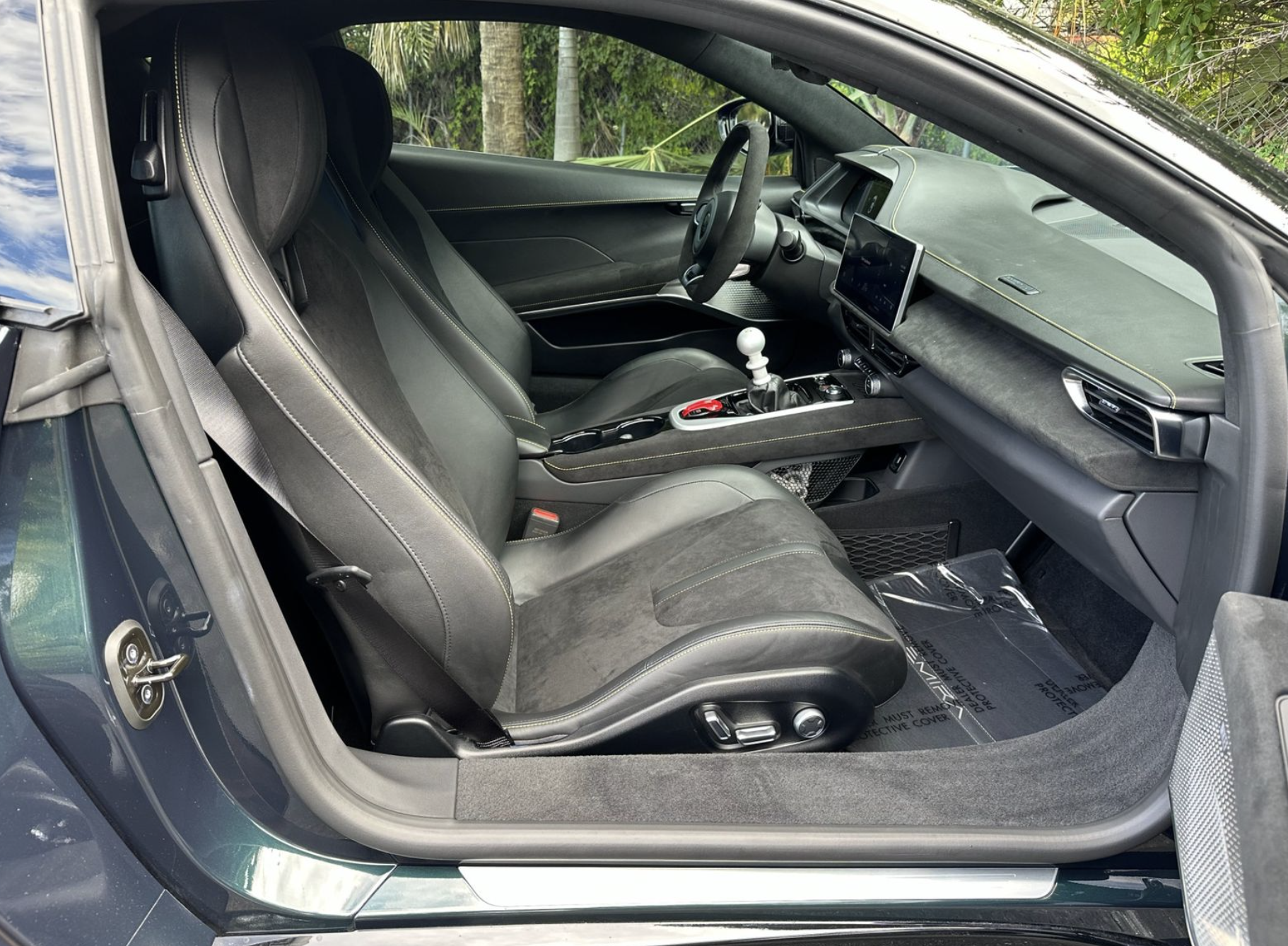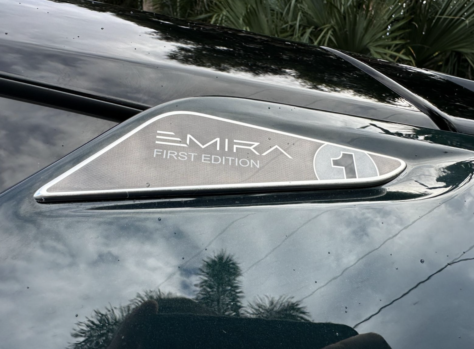 At the heart of this Emira lies the 3.5-liter supercharged V6, placing 400 hp to the rear wheels through a 6-speed manual transmission. This setup delivers a supercar-level driving experience: brisk acceleration (0–60 mph in roughly 4.2 seconds), razor-sharp handling thanks to Lotus’s heritage-tuned suspension and balanced mid-engine layout, and a top speed around 180 mph. The lightweight chassis, limited-slip differential, and Lotus-calibrated ride dynamics make this Emira V6 First Edition a highly capable and engaging sports car on both road and track.